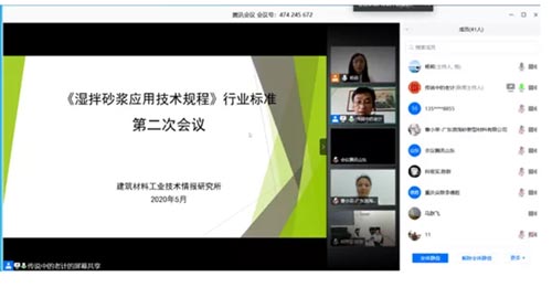 中國散協(xié)團(tuán)體標(biāo)準(zhǔn)《濕拌砂漿應(yīng)用技術(shù)規(guī)程》第二次標(biāo)準(zhǔn)編制工作會議于2020年5月22日上午9:30-11:30以網(wǎng)絡(luò)會議的形式召開。中國散裝水泥推廣發(fā)展協(xié)會秘書長、建筑材料工業(yè)技術(shù)情報研究所混凝土發(fā)展中心主任孫繼成博士、中國散裝水泥推廣發(fā)展協(xié)會專家委員計海霞高工、建筑材料工業(yè)技術(shù)情報研究所標(biāo)準(zhǔn)編制工作組楊莉、中建西部建設(shè)北方有限公司技術(shù)中心經(jīng)理張凱峰、成都精準(zhǔn)混凝土有限公司經(jīng)理馬占民、山東弗爾曼新材料集團(tuán)有限公司經(jīng)理肖維錄、主任薛俊書、廣東浪淘砂新型材料有限公司研發(fā)中心主任曹小榮、黃山精強(qiáng)建材股份有限公司副總經(jīng)理程楷、四川同舟化工有限公司技術(shù)片區(qū)負(fù)責(zé)人鄧奎、中信國安建工集團(tuán)有限公司總工張學(xué)華、麗水市處州混凝土有限公司總經(jīng)理?xiàng)罾凇?shí)驗(yàn)室主任金滿昌;株洲市中建新材料有限公司總經(jīng)理陳新、青島國基商砼有限公司郇建、昆明匯森混凝土有限公司杜顯茂等41名代表參加了會議。會議由建筑材料工業(yè)技術(shù)情報研究所楊莉主持。首先主編單位中國散裝水泥推廣發(fā)展協(xié)會秘書長、建筑材料工業(yè)技術(shù)情報研究所孫繼成博士介紹了標(biāo)準(zhǔn)編制要求以及編制工作進(jìn)度計劃。隨后,中國散裝水泥推廣發(fā)展協(xié)會專家委員、主編單位標(biāo)準(zhǔn)編制負(fù)責(zé)人計海霞高工就濕拌砂漿行業(yè)現(xiàn)狀、標(biāo)準(zhǔn)中創(chuàng)新點(diǎn)和關(guān)鍵點(diǎn)進(jìn)行介紹。標(biāo)準(zhǔn)編制組建筑材料工業(yè)技術(shù)情報研究所楊莉詳細(xì)介紹了標(biāo)準(zhǔn)文本及條款編制說明,并組織參會代就凝結(jié)時間、保塑時間、14拉伸粘結(jié)強(qiáng)度等關(guān)鍵技術(shù)參數(shù)進(jìn)行交流討論,廣泛征集參編單位意見。該會議的召開對標(biāo)準(zhǔn)編制工作起到了大的推進(jìn)作用。標(biāo)準(zhǔn)編制負(fù)責(zé)人計海霞高工標(biāo)準(zhǔn)編制組工程師楊莉